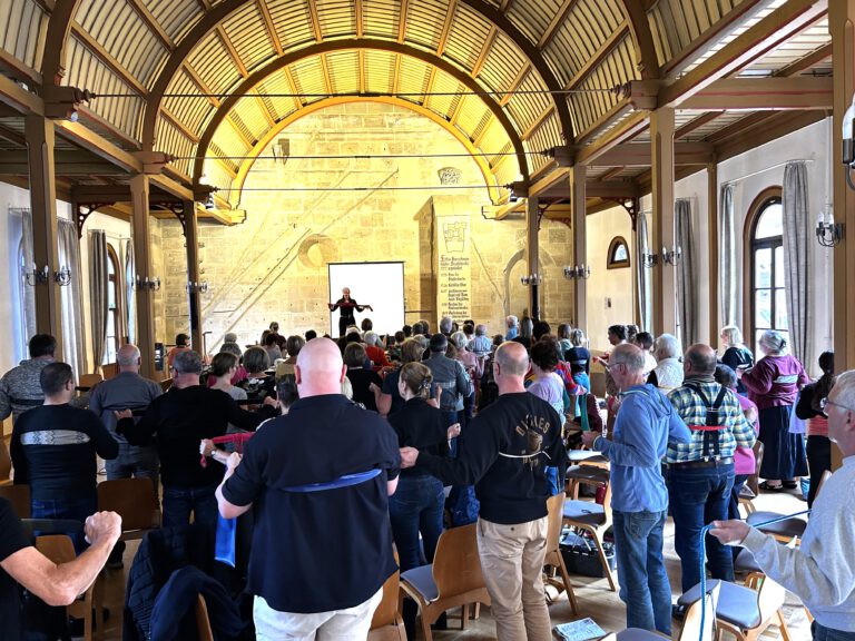 Einen besonderen Nachmittag hat Dekanatskirchenmusiker Stephan Beck für Chorleiter/innen und Sänger/innen der Kirchenchöre des Dekanatsbezirks Schwäbisch Gmünd vorbereitet: Mit der Sopranistin Anna Escala ging es im Großen Festsaal des Franziskaners in einem viereinhalbstündigen Workshop um Stimmbildung. „Wir finden es klasse, dass die Resonanz so groß ist“, freuten sich Dekan Robert Kloker und Stephan Beck. Über 90 Personen hatten sich im Franziskaner eingefunden.